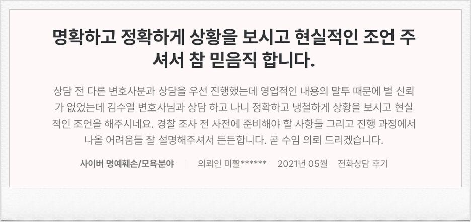 만약 위 글을 읽으신 후에 저희 로펌에 신뢰가 생기셔서, 상담받기를 원하시는 분들이라면 연락 주셔도 좋습니다.