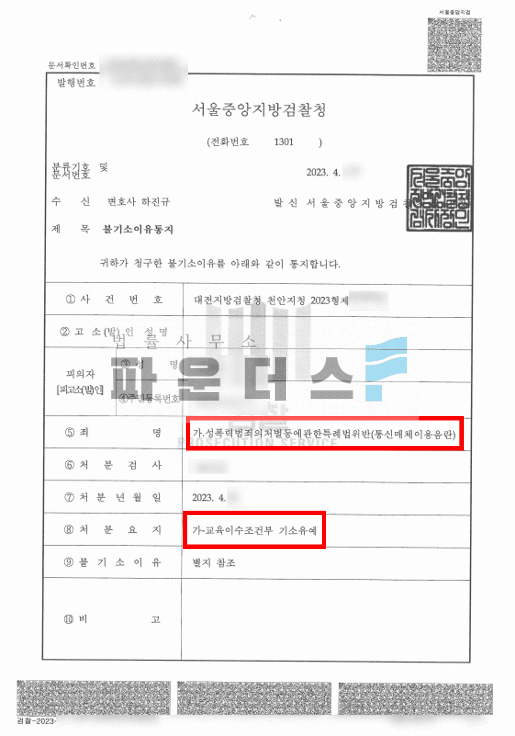 그 결과 의뢰인은 교육이수조건부 기소유예 처분으로 사건을 마무리할 수 있었습니다.
