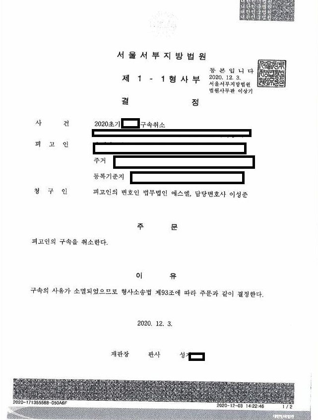 의뢰인께서는 과거 집행유예를 선고받고 부수처분에 따르지 않아 집행유예가 취소된 상황이었습니다. 이에 구속 상태에서 집행유예취소인용결정에 대한 즉시항고가 진행되었는데 저희의 발빠른 대처로 즉시항고 인용결정과 더불어 구속을 취소시키는 쾌거를 이루었습니다. 구속사유가 소멸되었음을 소명하기 위해서는 변호인의 세심한 검토와 노력이 필요합니다.