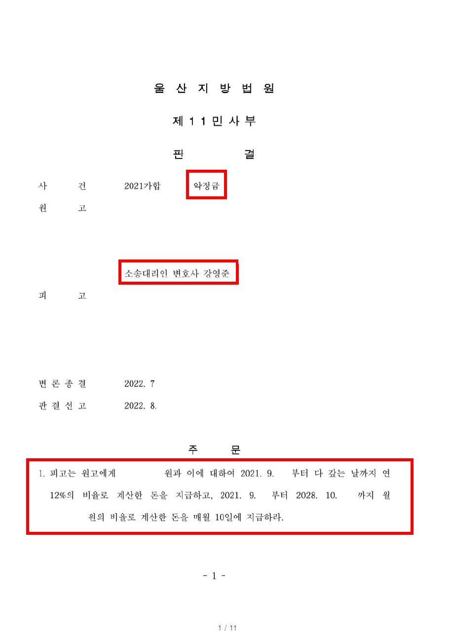 그 결과 울산지방법원에서는 소송비용은 피고가 부담하라는 판결을 내렸습니다.