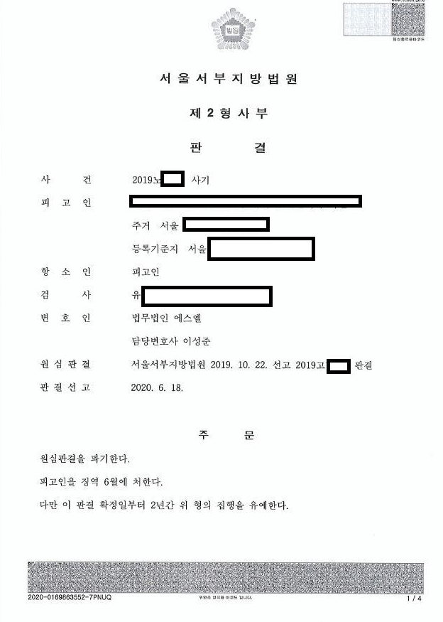 본 사안의 경우 상대방측와 잘 조율이 되었고 실제 매출과 권리금간의 괴리가 그리 크지 않다는 점을 부각하여 다행히 집행유예 판결을 받을 수 있었습니다.