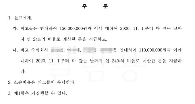 ![[대여금,채권추심]연대보증인 2억6천만원 인용(물상보증계약해제)](/_next/image?url=https%3A%2F%2Fd2ai3ajp99ywjy.cloudfront.net%2Fuploads%2Ftitleimage%2Foriginal%2F5f10144ca2f0f301e1483ea5-original.jpg&w=3840&q=75)