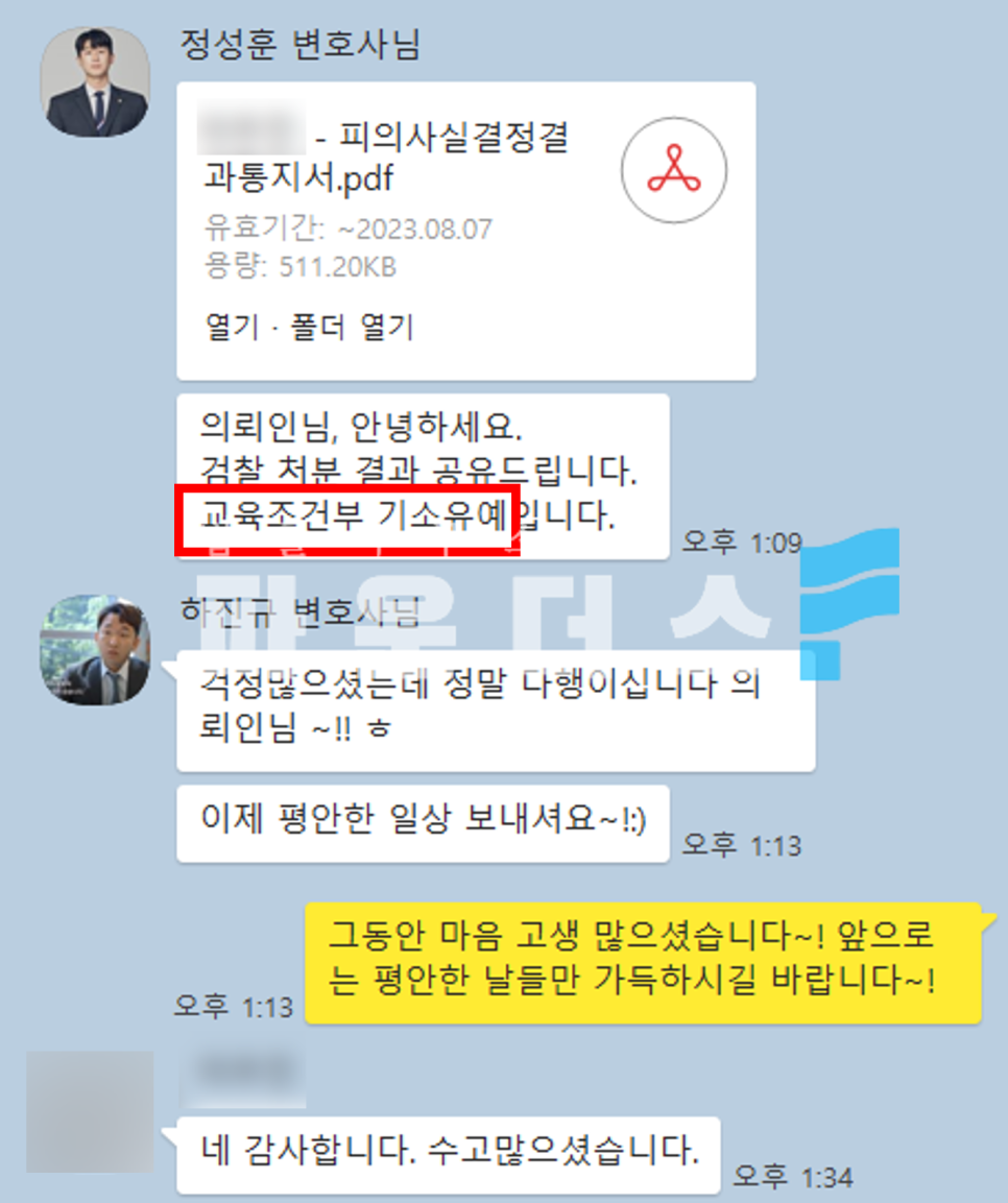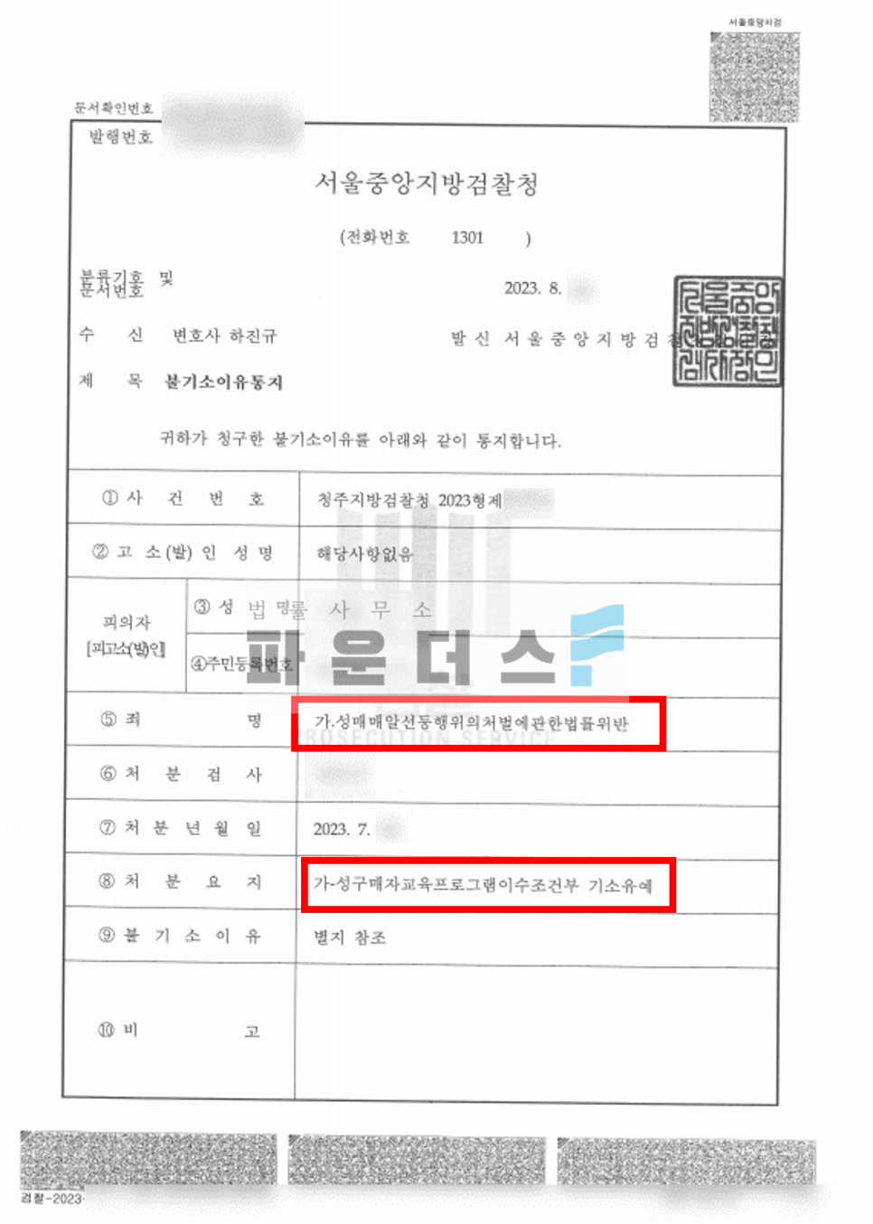 그 결과 의뢰인은 성매매 혐의에 있어 교육프로그램 이수 조건 기소유예 처분으로 사건을 마무리할 수 있었습니다.