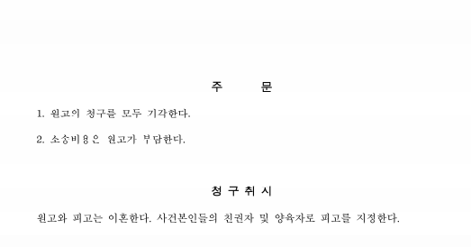 결국, 재판부도 원고의 이혼 귀책사유 주장은 아무런 근거가 없는 것으로, 원고가 악의적 허위사실로 이혼청구한 것이라는 결론을 내리고는 원고의 청구에 대해 기각판결을 내렸습니다.