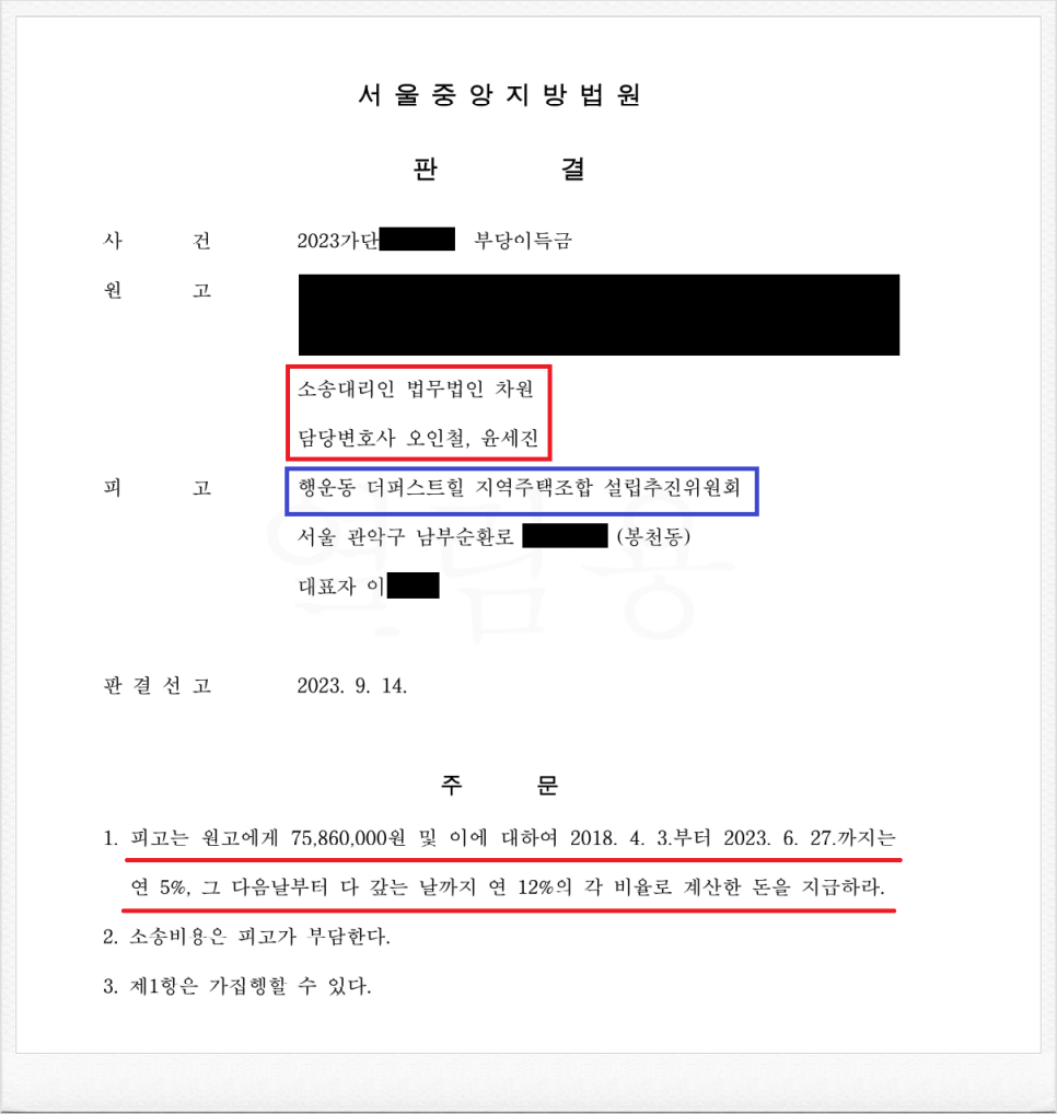 결국, 재판부는 이러한 저의 주장을 받아들였고, 피고는 의뢰인에게 기지급 받은 금원 및 이에 대한 지연손해금을 지급하라는 내용의 판결을 이끌어 내었습니다.