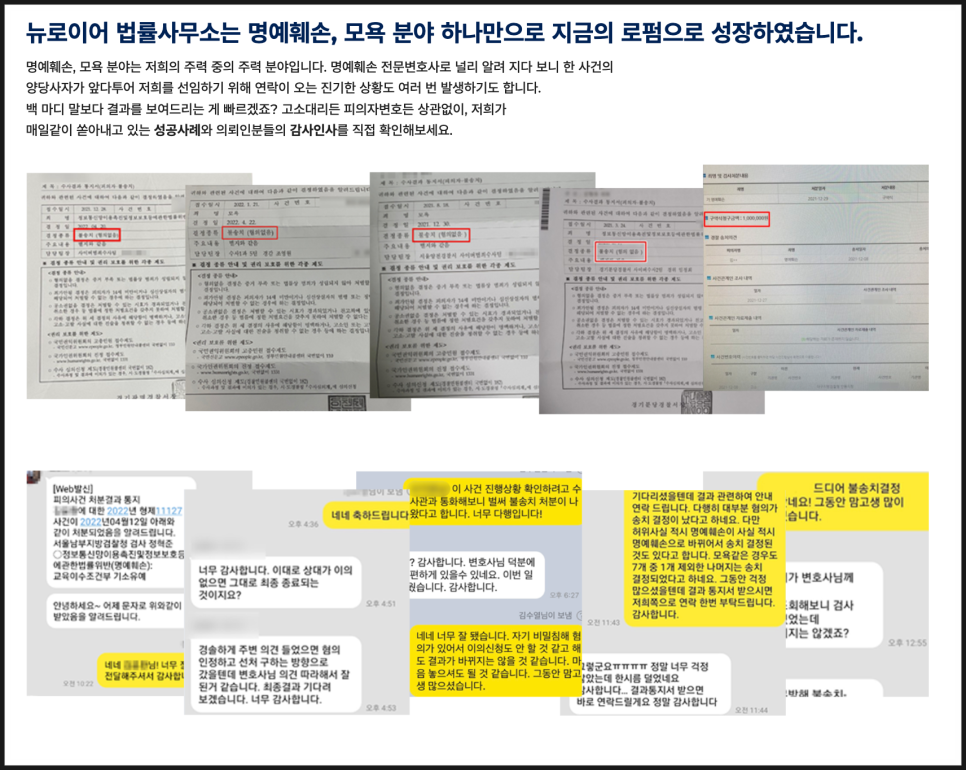 명예훼손 사건을 전담하고 있는 로펌으로서