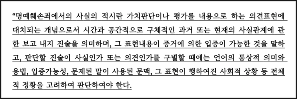 실제로 상대가 사실 적시라고 주장하는 부분이 의견의 표현으로 주장할 수 있는 돌파구를 찾았고,