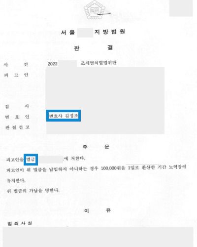 변호인의 노력 끝에 벌금형으로 방어할 수 있었습니다.