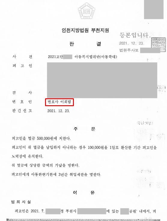 [ 형사 성공사례 ] 아동복지법 위반(아동학대) 벌금형 성공사례
