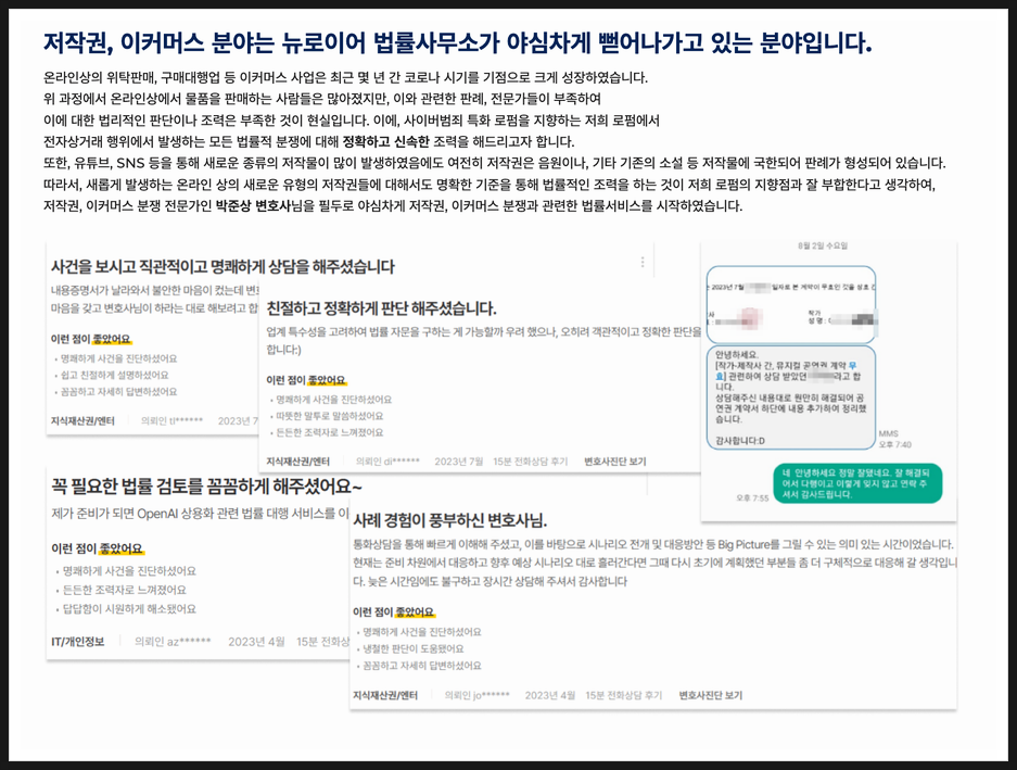통해 소설가, 구독자 50만 이상 유튜버, 콘텐츠 제작자 등의 대량 고소 사건을 수행해 왔다 보니,