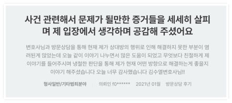 심지어 '한 사건의 양 당사자분이 찾아주신 이례적인 사례를 보유한 로펌'으로서