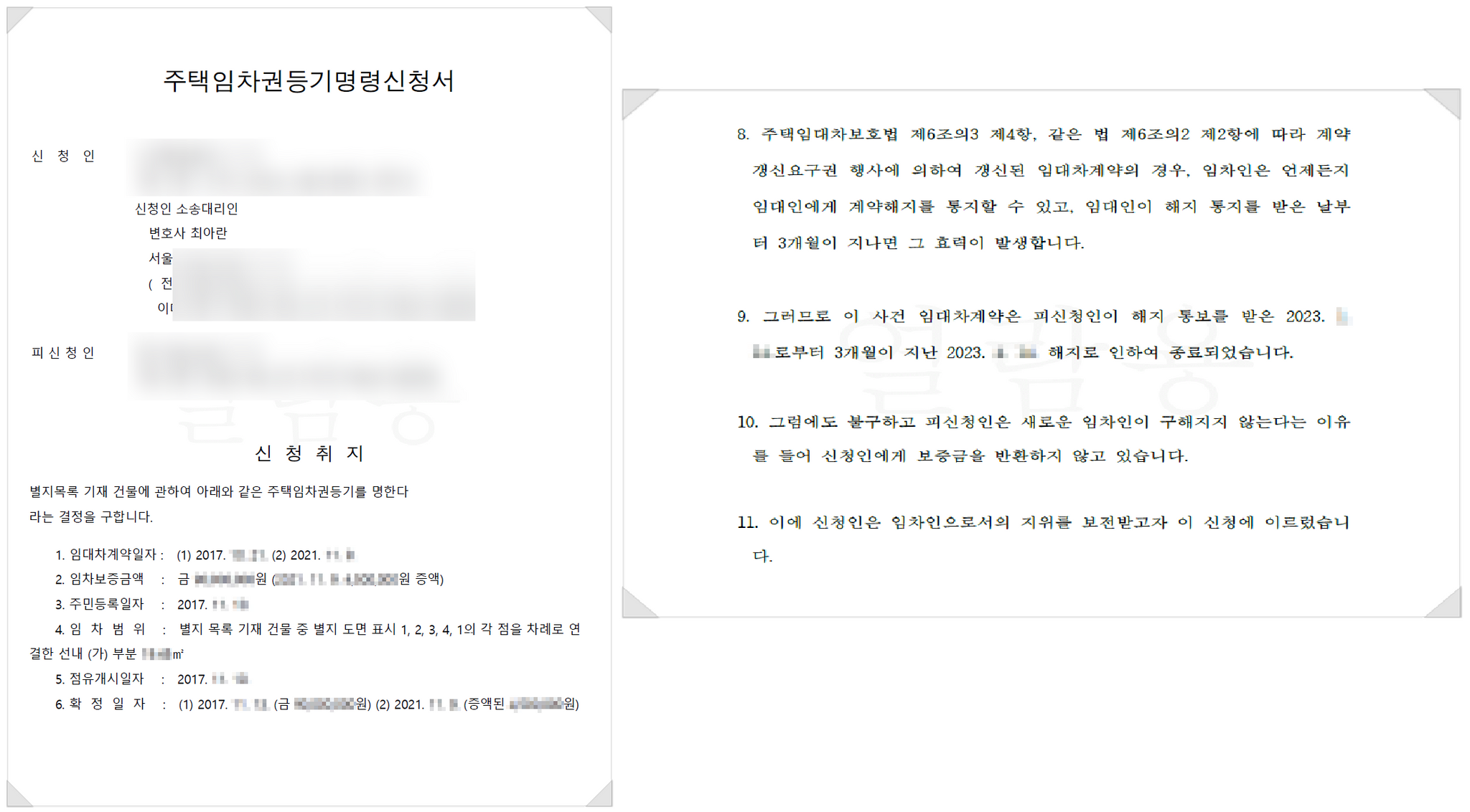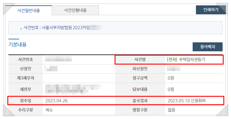 이에 저는 의뢰인에게 임차권등기를 신속하게 진행하셔야 한다는 점을 말씀드렸고, 신속하게 임차권등기도 함께 신청하였습니다.