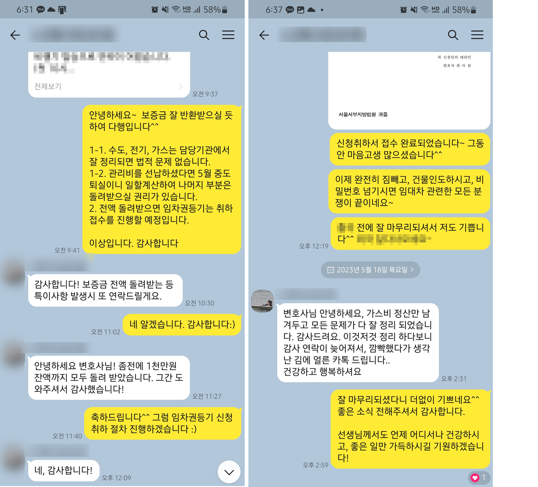 결국 내용증명을 발송하고 약 2주 뒤, 의뢰인은 임대인으로부터 전세보증금을 전액 반환받았습니다.