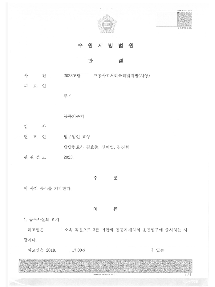 저는 경찰 조사부터 동석하는 한편 피해자와의 합의를 이끌어내어 법원은 공소기각 판결을 선고하였습니다.