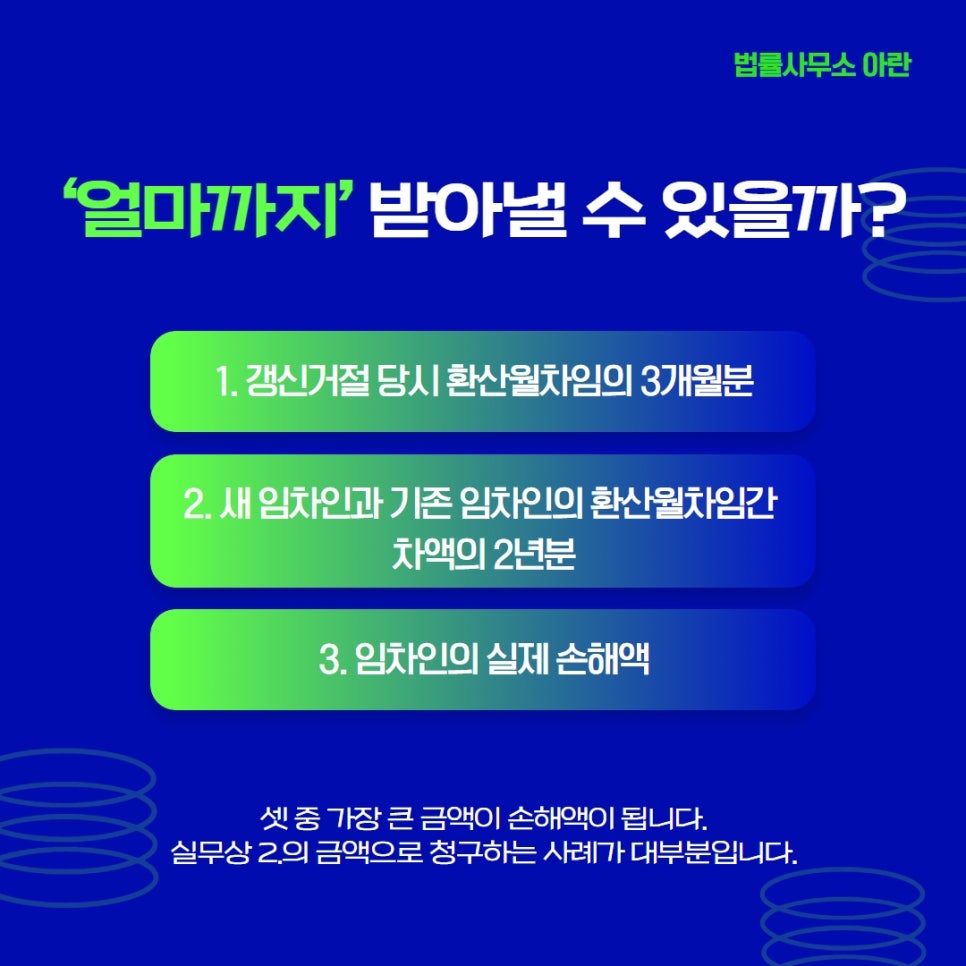 그렇다면 이제 관건은 얼마를 받아낼 수 있느냐인데요. 아래 3가지 금액 중 가장 큰 금액을 받아낼 수 있습니다.
