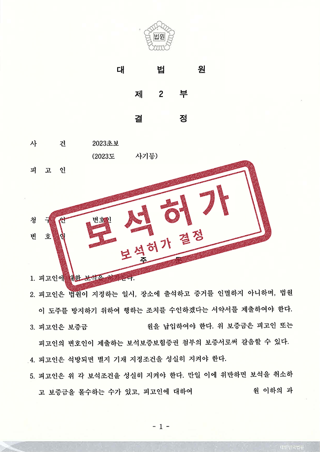 이 사건은 특이하게도 피고인의 가족이 먼저 보석을 의뢰한 것이 아니라, 사건 선임 이후 일로 변호사가 보석의 가능성을 보고 가족들에게 허가신청의 진행을 허락받은 사건입니다.