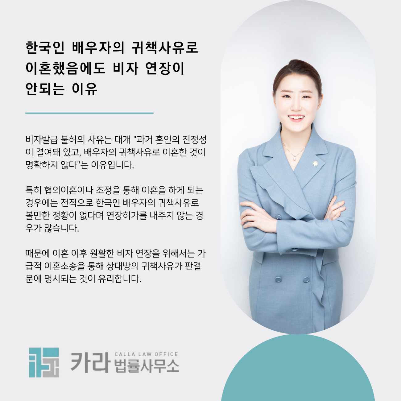때문에 이혼 이후 원활한 비자 연장을 위해서는 가급적 이혼소송을 통해 상대방의 귀책사유가 판결문에 명시되는 것이 유리합니다.
