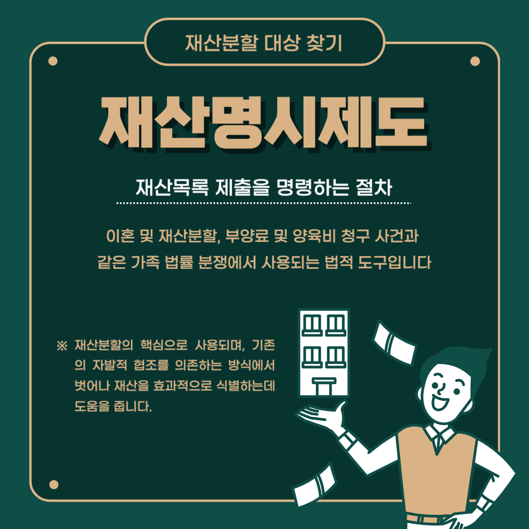 재산분할은 이혼 과정에서 가장 중요한 부분 중 하나입니다. 그러나 재산을 정확하게 찾고 구분하는 것은 어렵습니다. 다행히 재산명시제도를 통해 이 문제를 해결할 수 있습니다.