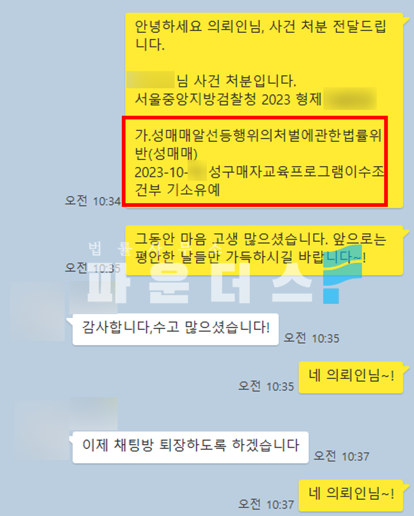 그 결과 의뢰인은 성구매자교육프로그램이수조건부 기소유예 처분으로 사건을 마무리할 수 있었습니다.
