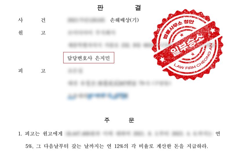 그 결과 재판부에서는 변호인의 주장을 받아들여 원고의 청구 중 3,800만 원을 인용하였습니다.
