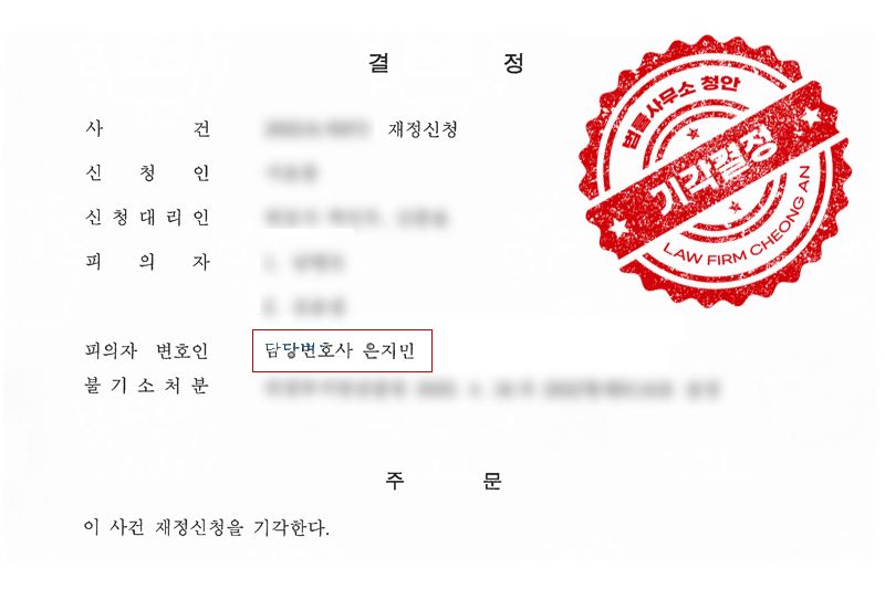 그 결과, 재판부에서는 변호인의 의견을 받아들여 재정신청 기각결정을 내렸습니다.