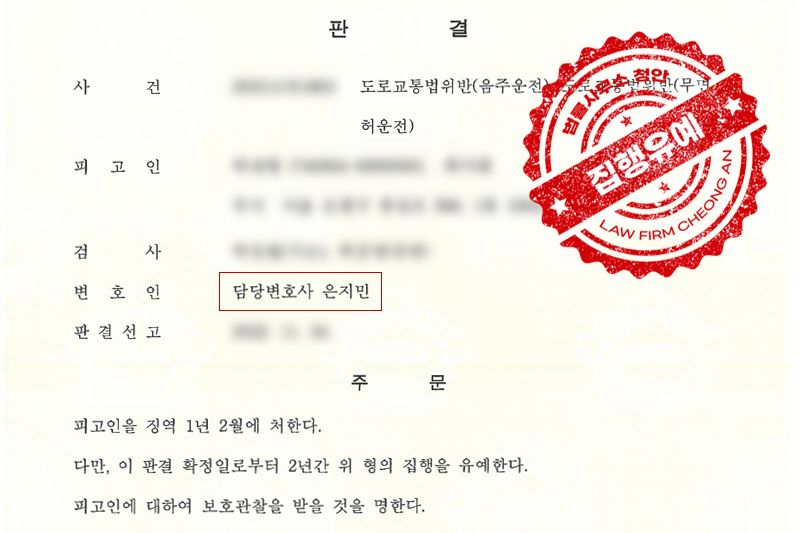 그 결과, 재판부에서는 의뢰인이 일으킨 도로교통상의 위험이 상당하지만 제반 사정을 고려하여 집행유예를 선고하였고 의뢰인은 일상으로 돌아갈 수 있었습니다.