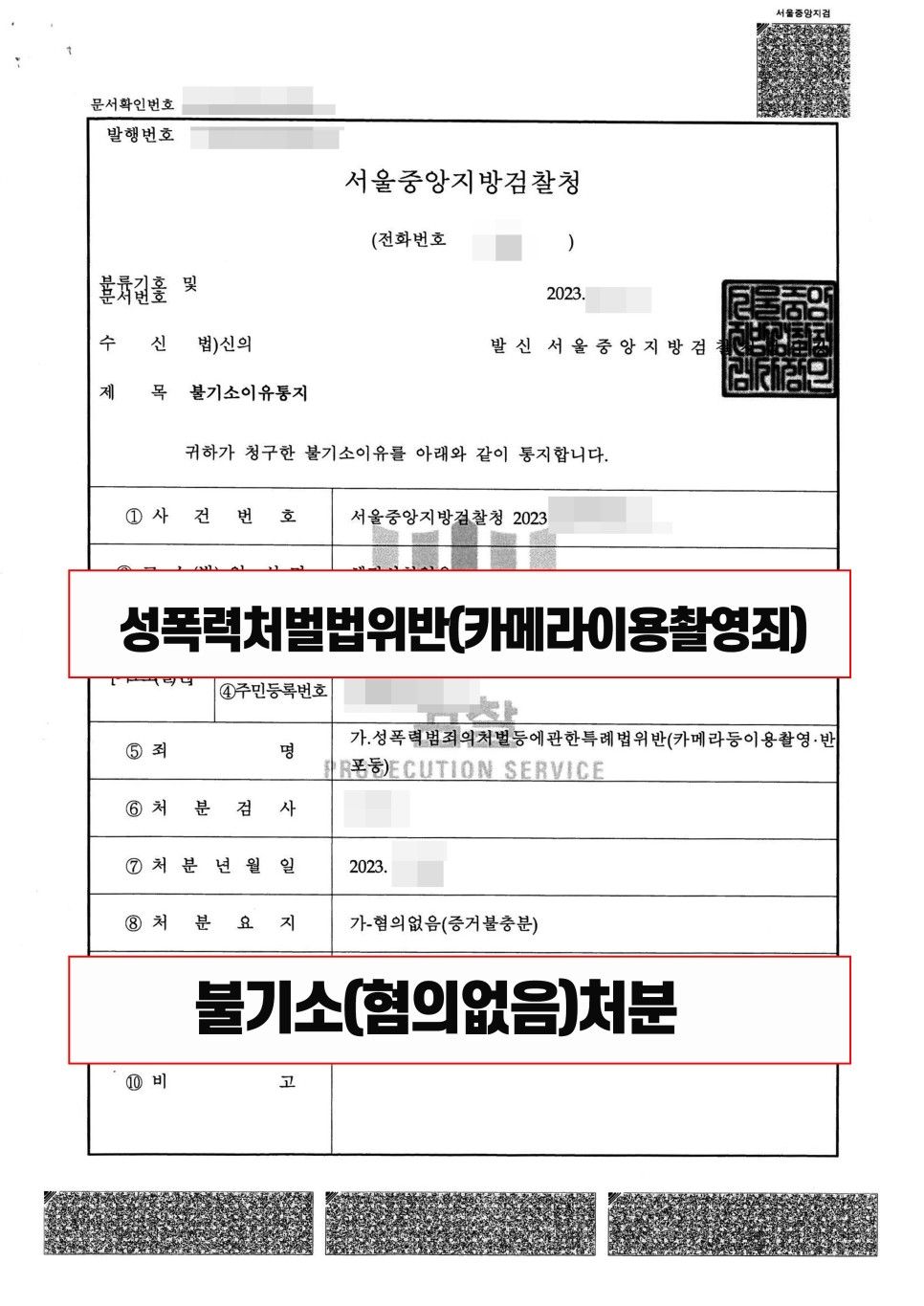 결국 의뢰인은 카메라이용촬영죄의 범죄 성립요건에 충족되지 않는다는 점이 인정받아 검사 수사 단계에서 불기소(혐의없음)처분을 이끌어낼 수 있었는데요.