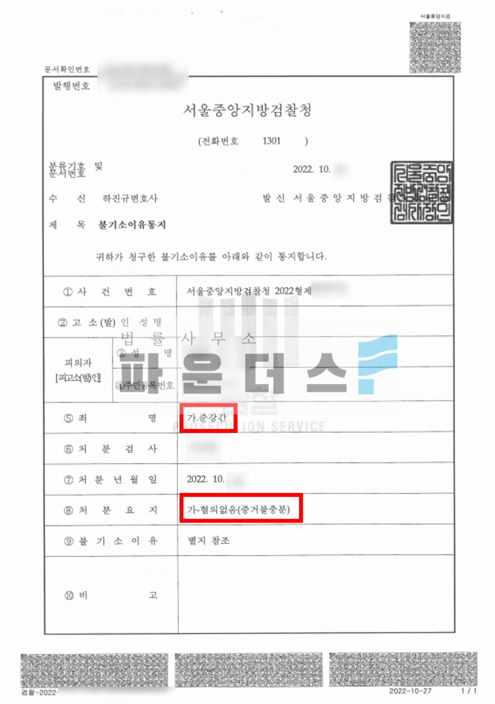 그 결과 의뢰인은 준강간 혐의에 있어 혐의없음(증거불충분)으로 사건을 마무리할 수 있었습니다.