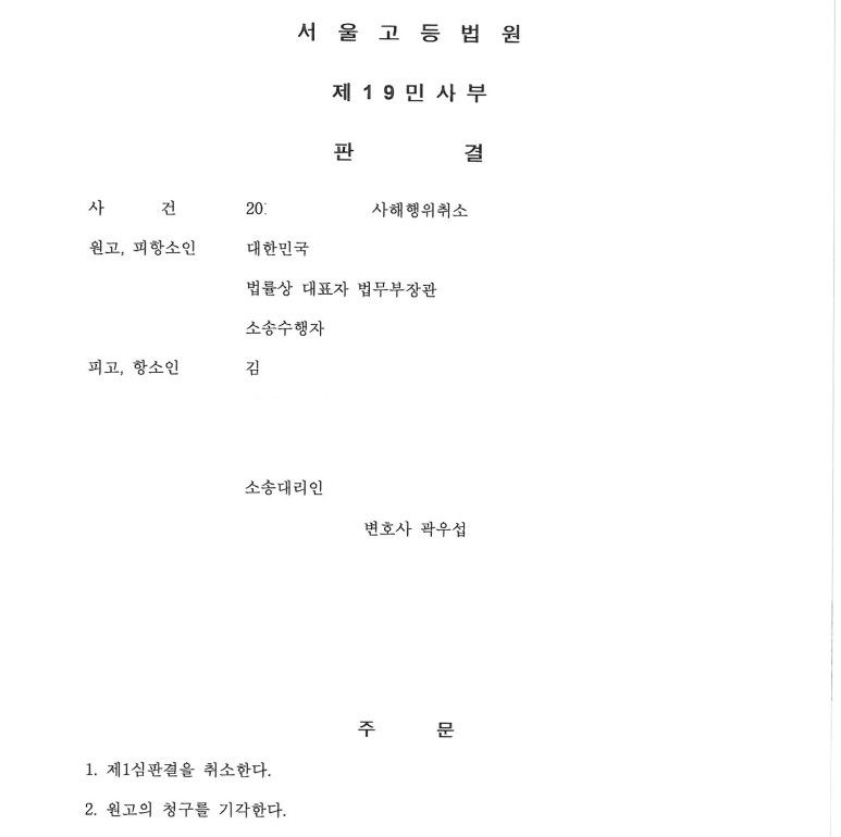 이에 1심과 달리 2심에서 국가를 상대로 전부 승소를 이끌어 내었고, 의뢰인은 본인 명의의 재산을 보호할 수 있게 되었습니다.