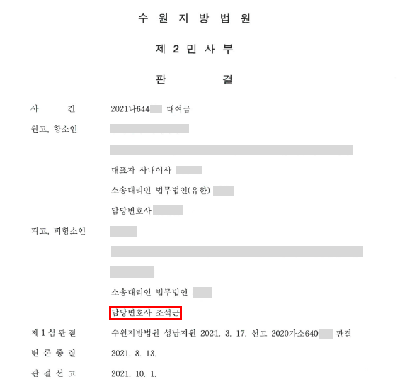 3. 결론은 어떻게 됐나요. (피고 100% 승소)