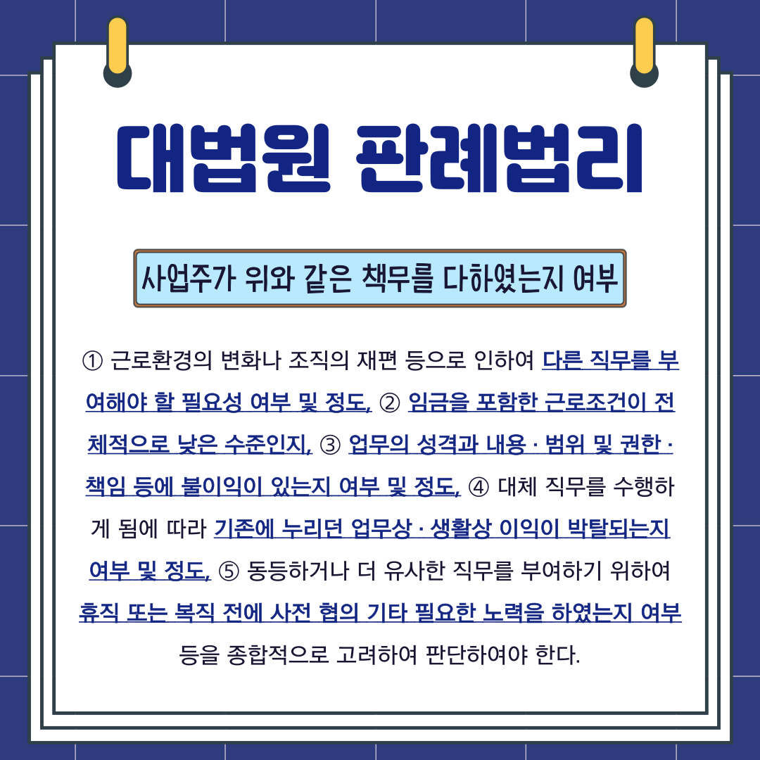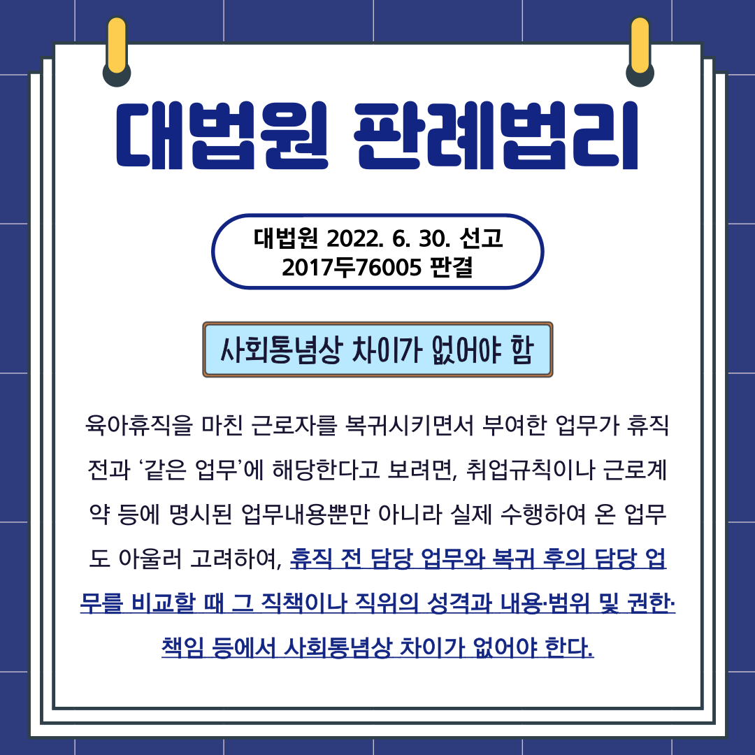 오늘은, 육아휴직 후 복직업무의 정당성에 대한 대법원 판례를 소개해 드리겠습니다.