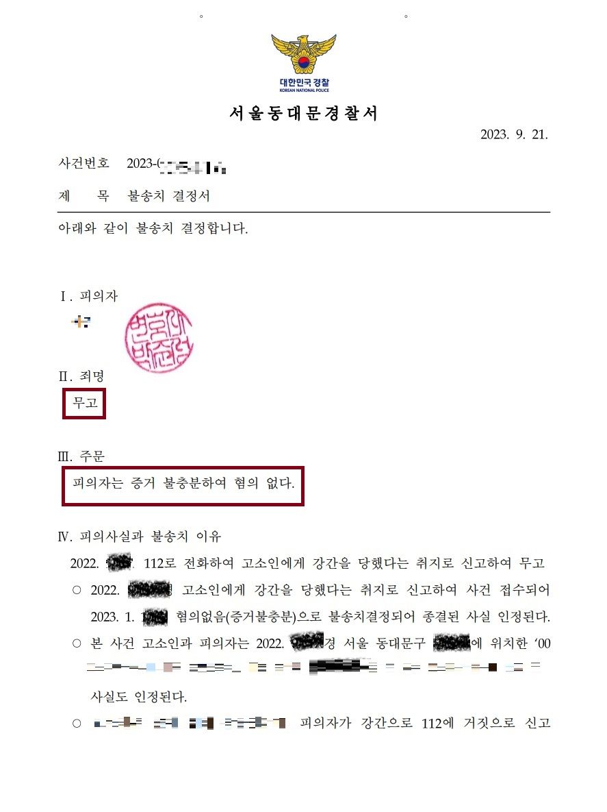 현재까지도 이 무고죄 사건에 대한 가해자의 이의신청은 없는 것으로 확인되는 바, 이제 애초 피해를 입었던 강간 사건에 대한 대응도 안정적으로 할 수 있는 기반을 마련하게 되었습니다.