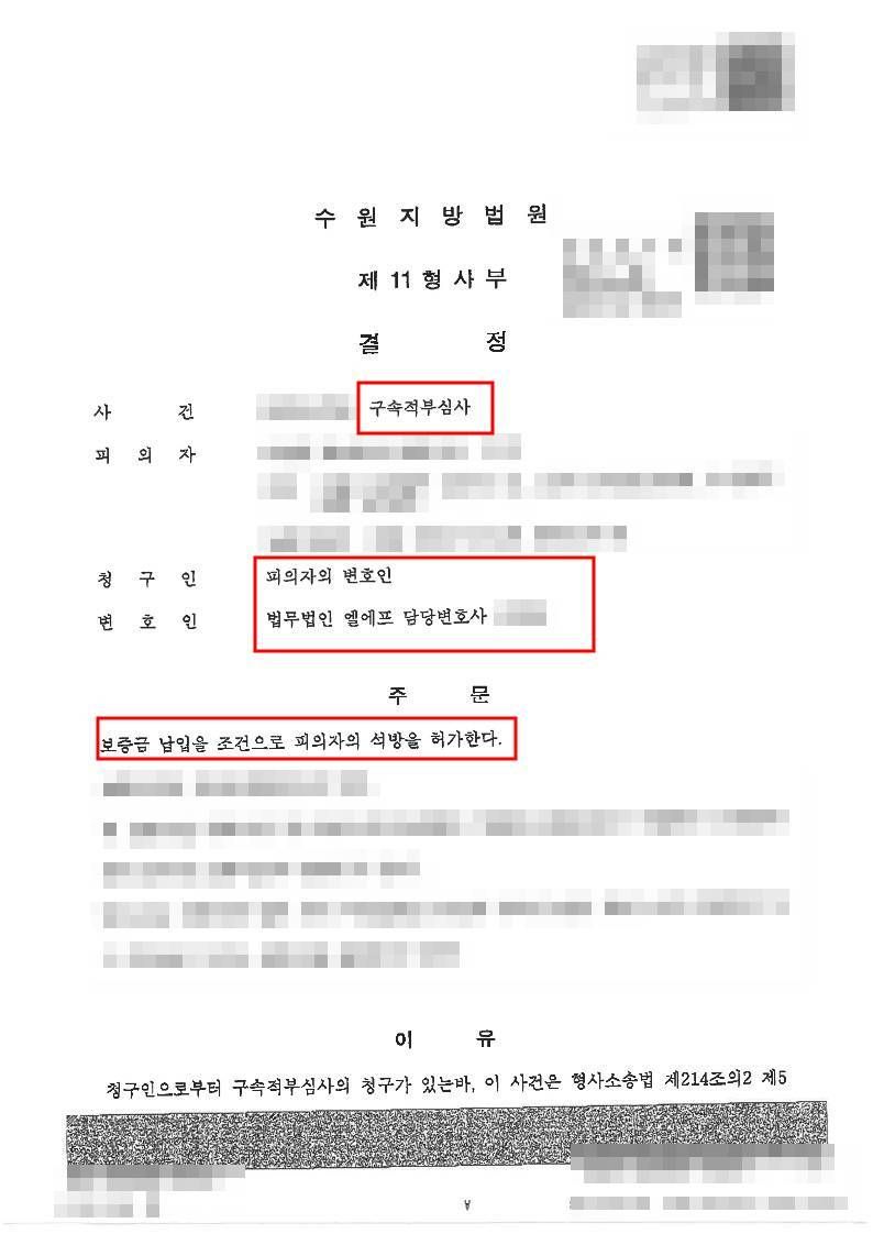 │LF 변호인 조력단은 구치소에서 접견을 통해 사건 내용을 먼저 파악하였고, 사건 내용에 대해 입장부터 확인을 하였습니다. 완전히 인정하는 취지의 조사를 받지는 않은 상태였고, 향후 검찰 조사에서 어떤 질문이 나올지 그리고 어떤 방향으로 대답하면 좋을지 접견을 통해 이야기를 나누었습니다. 이후 구속적부심을 신청하고 재판부에 의뢰인이 피해회복을 위해 적극적으로 노력하고 있는 점과 부인하는 부분이 지엽적인 부분에 불과하고 전반적으로는 범행사실에 대해 크게 다투지는 않는 점을 강조하며 불구속 수사와 재판을 받을 수 있게 적부심 인용을 강조하였습니다.
