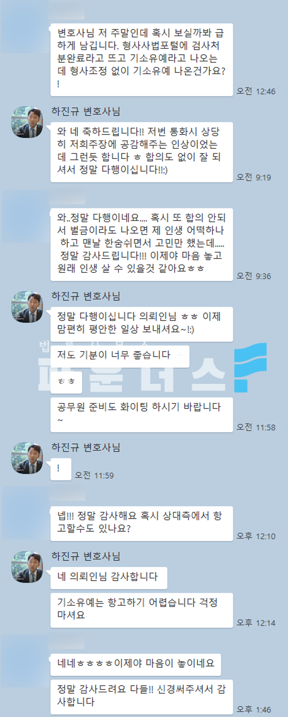 또한 조사 당일 변호인은 의뢰인과 동행하여 심리적 부담을 덜어줄뿐더러 조사 진행 중 예상치 못한 질문이 나왔을 시 간접적인 조력으로 답변에 조력을 드렸습니다.