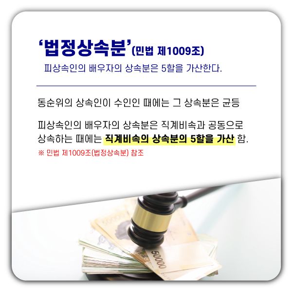 예를 들어 ‘1남 2녀의 자녀를 둔 5인 가정에서 아버지가 돌아가신 경우에는 아버지의 배우자인 어머니와 1남 2녀의 자녀, 총 4인이 법정 상속인’이 되는 것입니다.
