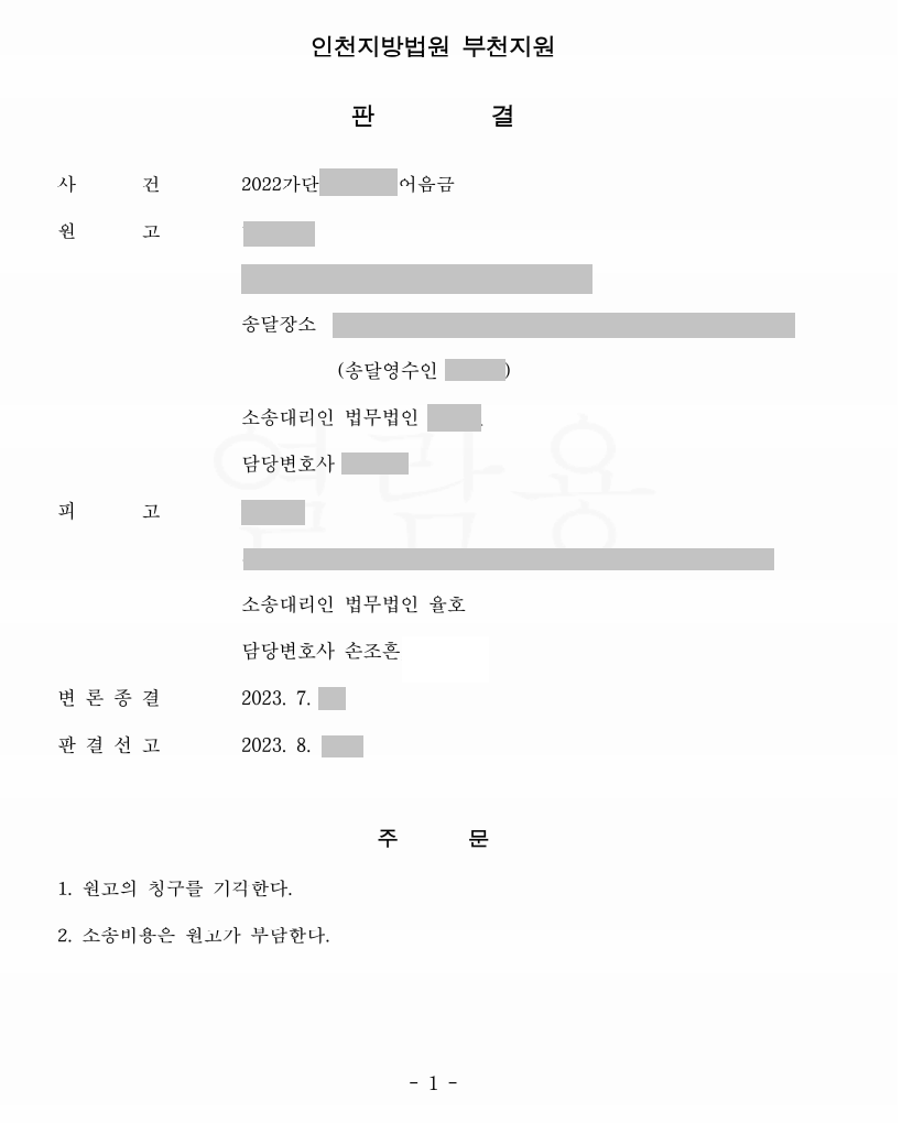 법원은 손조흔 변호사의 주장을 전부 받아들여 원고의 청구를 기각하였습니다.