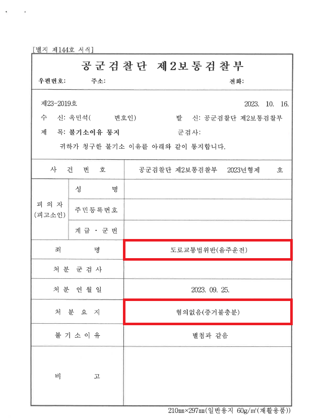 이러한 저의 조력을 바탕으로 A씨는 군검찰로부터 '혐의없음(증거불충분)' 처분을 받음으로써 징계를 받고 군생활에 지장이 생길 위기에서 벗어날 수 있었습니다.