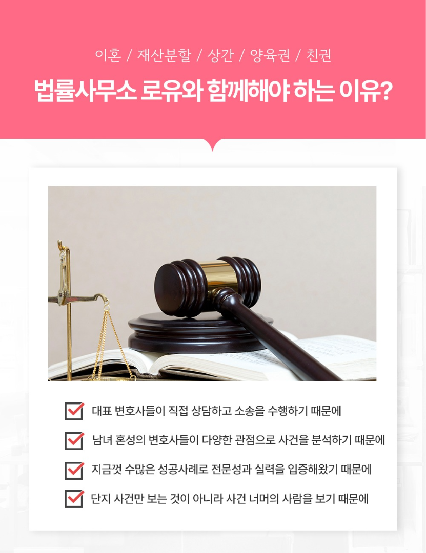 법률사무소 로유는 수원시 대표 고문변호사이자 이혼전문변호사인 저, 배희정 변호사가 더 효율적이고 확실한 이혼을 위해 의뢰인의 편에 서서 모든 절차를 조력 드리고 있습니다.