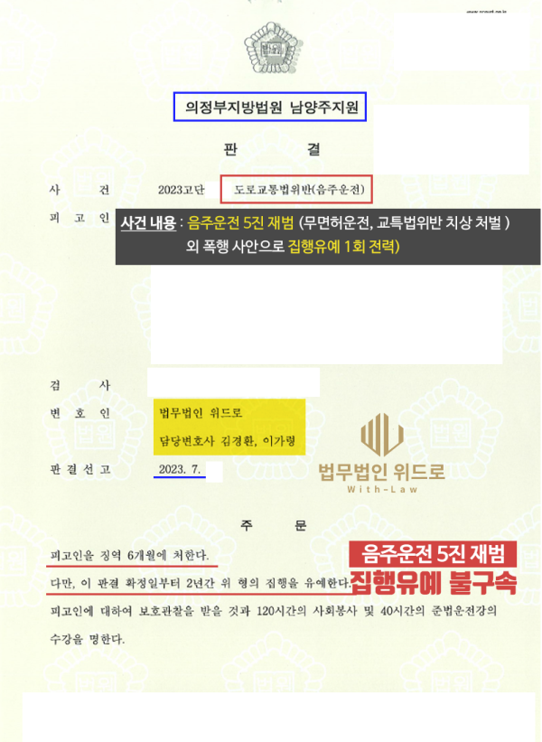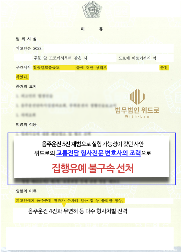 음주운전 5진 재범(집행유예 전력)