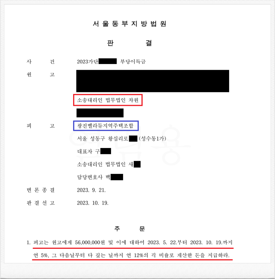 결국, 재판부는 이러한 저의 주장을 받아들였고, 피고는 의뢰인에게 기지급 받은 금원 및 이에 대한 지연손해금을 지급하라는 내용의 판결을 이끌어 내었습니다.
