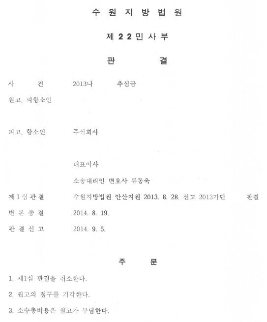 원고는 피고를 상대로 추심금 소송을 제기하였고, 피고는 소장을 송달 받고 이를 무시했습니다. 결국 무변론 판결 선고로 원고가 승소를 하였고, 피고는 뒤늦게 항소를 하게 된 것입니다. 참고로 피고는 제 중학교 친구입니다. 피고는 항소심에서 위 첫번째 항변과 같이, 압류 및 추심 명령 이전에 이미 채주자에게 모두 변제를 하였다는 사실을 주장 입증하여 승소 판결을 받을 수 있었습니다. |
