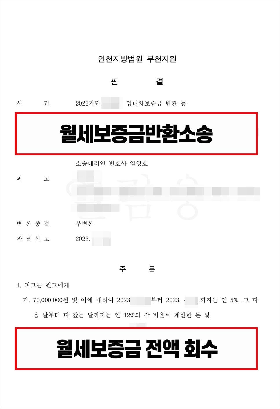 하여 오늘 성공사례를 잘 참고하시면 월세보증금반환이 이뤄지지 않아 비슷한 고민을 하고 계신 분에게 큰 도움이 되실 수 있을 것입니다.