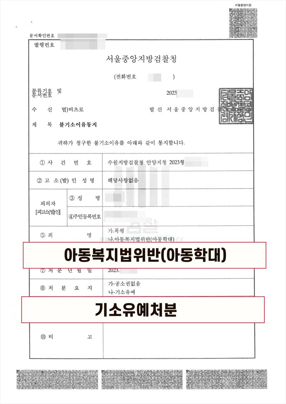 이러한 노력에 힘입어 검찰은 아동학대혐의에 대해서 기소유예처분을 내렸습니다.
