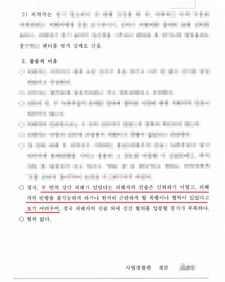 결론 - 무혐의 불송치