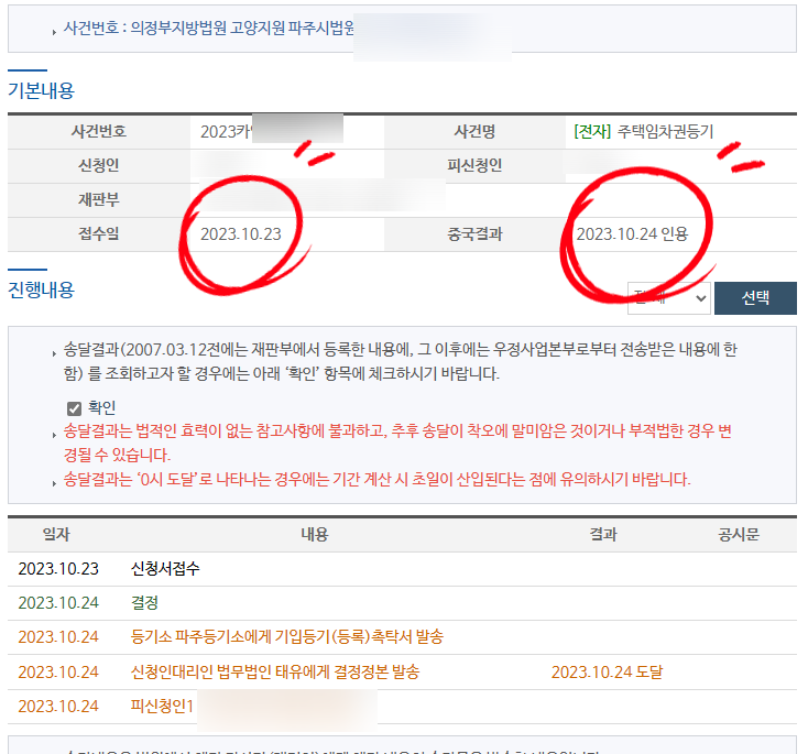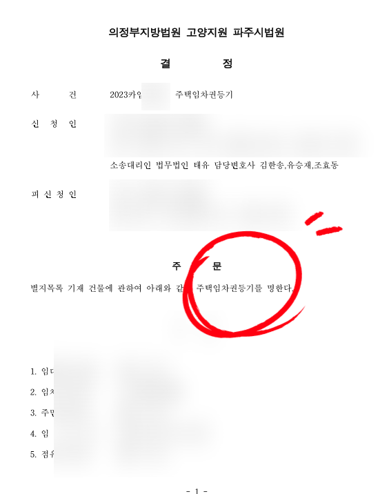그럼에도 오늘 성공사례로 임차권등기명령결정을 올리는 이유는, "단 하루만에!" 임차권등기결정문이 나왔기 때문입니다.