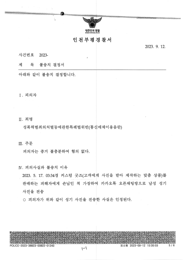 어플의 특성과 이용자들의 이용목적을 뻔히 알고서 어플을 나가지 않으면서 어플에서의 메세지를 수신하였던 고소인은 위 성적 메세지나 성기 사진 등을 전송받는 것에 대하여 묵시적 동의를 하였다고 보아야 했습니다.