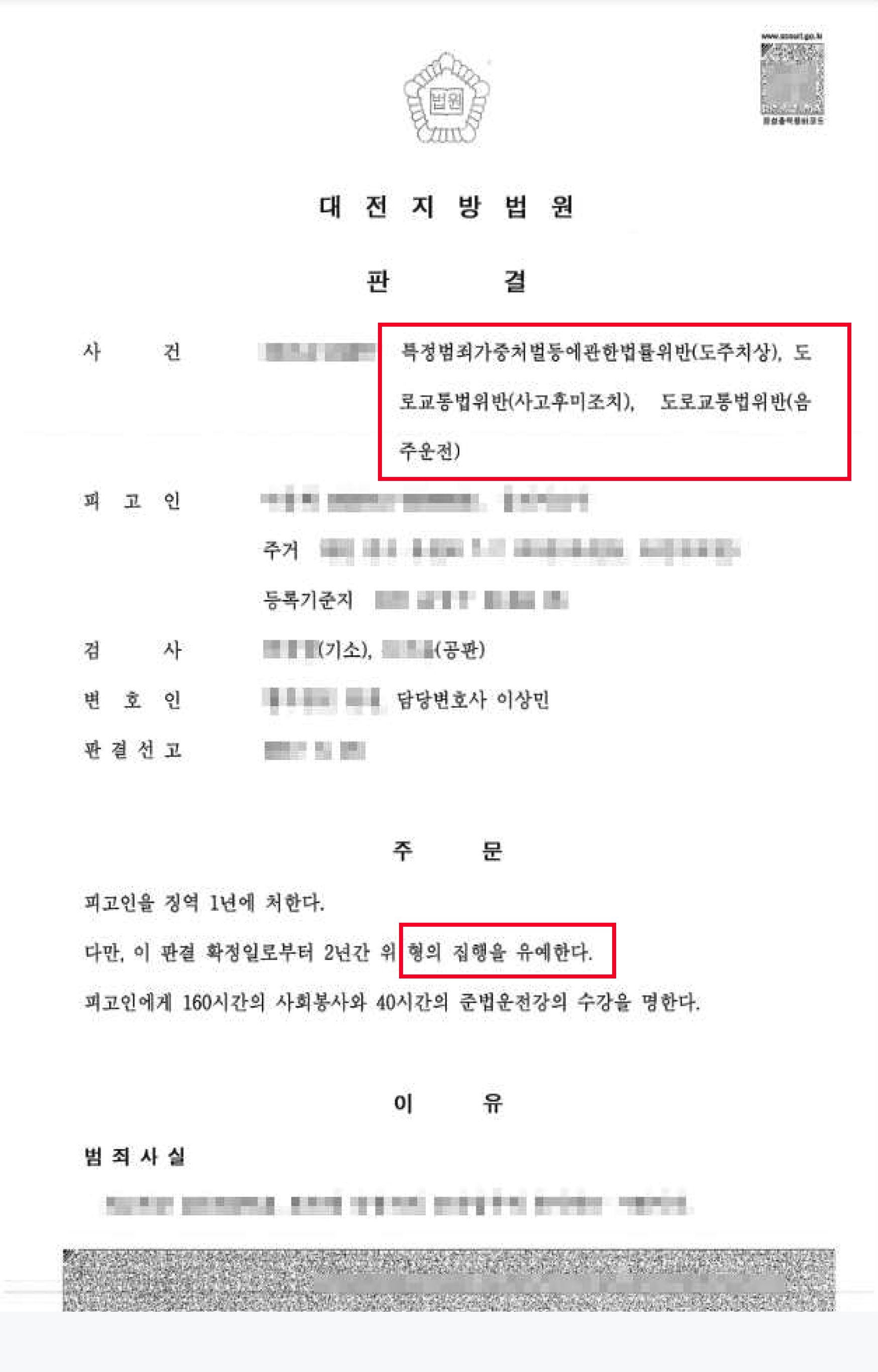 만약 피해자와 합의가 되지 않았다면 집행유예가 아닌 징역형 선고가 되었을 것입니다.
