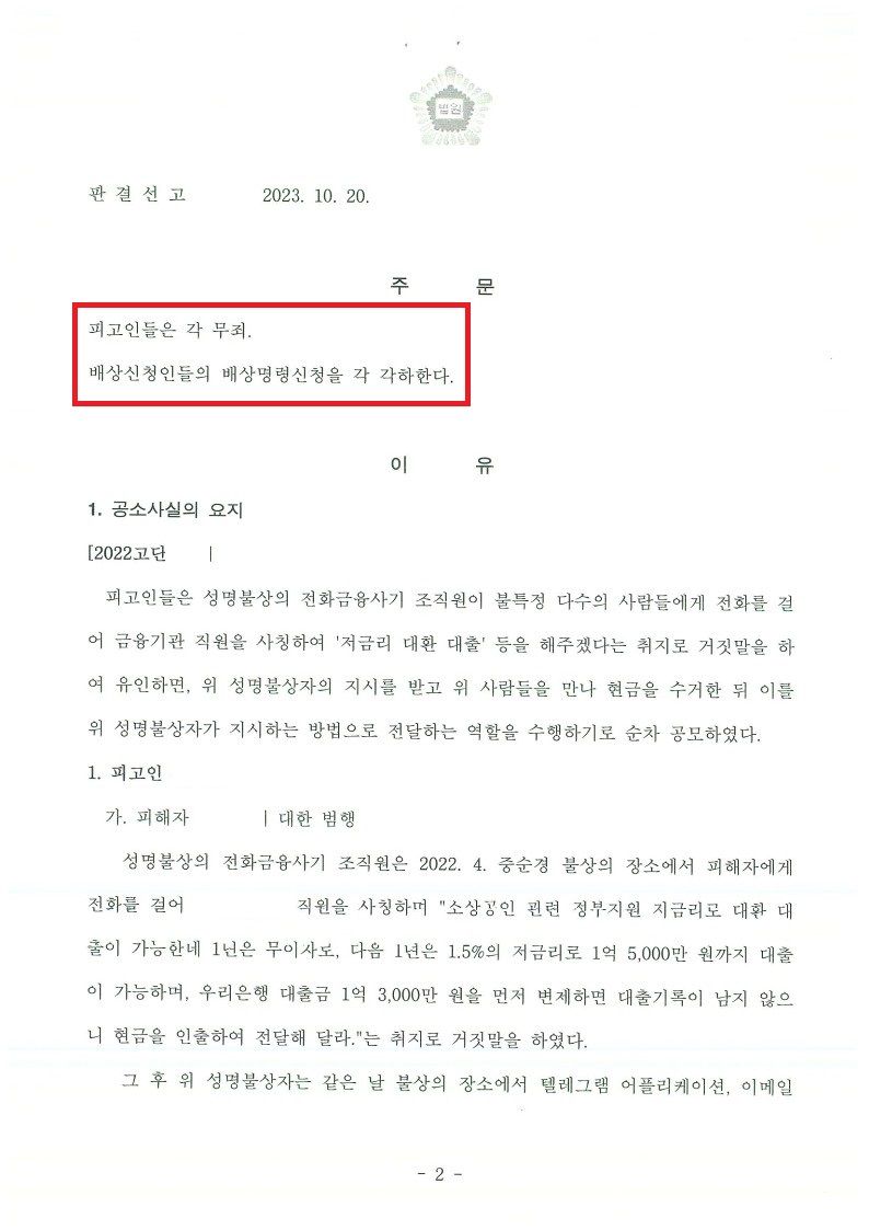 앞서 말씀드렸듯 보이스피싱에 관여된 분들은, 분명 자신들의 행동으로 어마어마한 피해가 발생한 것은 맞지만, 이를 의도하면서 일을 한 사람과 그렇지 않은 사람을 구분하는 것은 너무나도 어렵고 분명하지 않은 일이거든요.