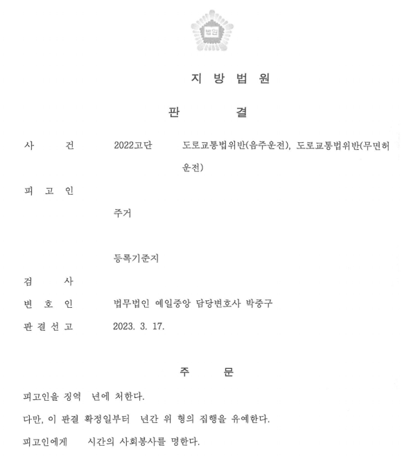 다행히 집행유예 판결을 받은 사례입니다.