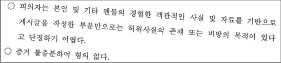 6. 정보통신망법상의 허위사실 명예훼손죄는 '사람을 비방할 목적'이 있음을 요구하고 있습니다. 즉, 이 규정에 따른 범죄가 성립하려면 피고인이 공공연하게 드러낸 사실이 거짓이고 그 사실이 거짓임을 인식하여야 할 뿐만 아니라 사람을 비방할 목적이 있어야 하며, 비방할 목적이 있는지 여부는 피고인이 드러낸 사실이 거짓인지 여부와 별개의 구성요건으로서, 드러낸 사실이 거짓이라고 해서 비방할 목적이 당연히 인정되는 것도 아닙니다(대법원 2020도11471 판결).